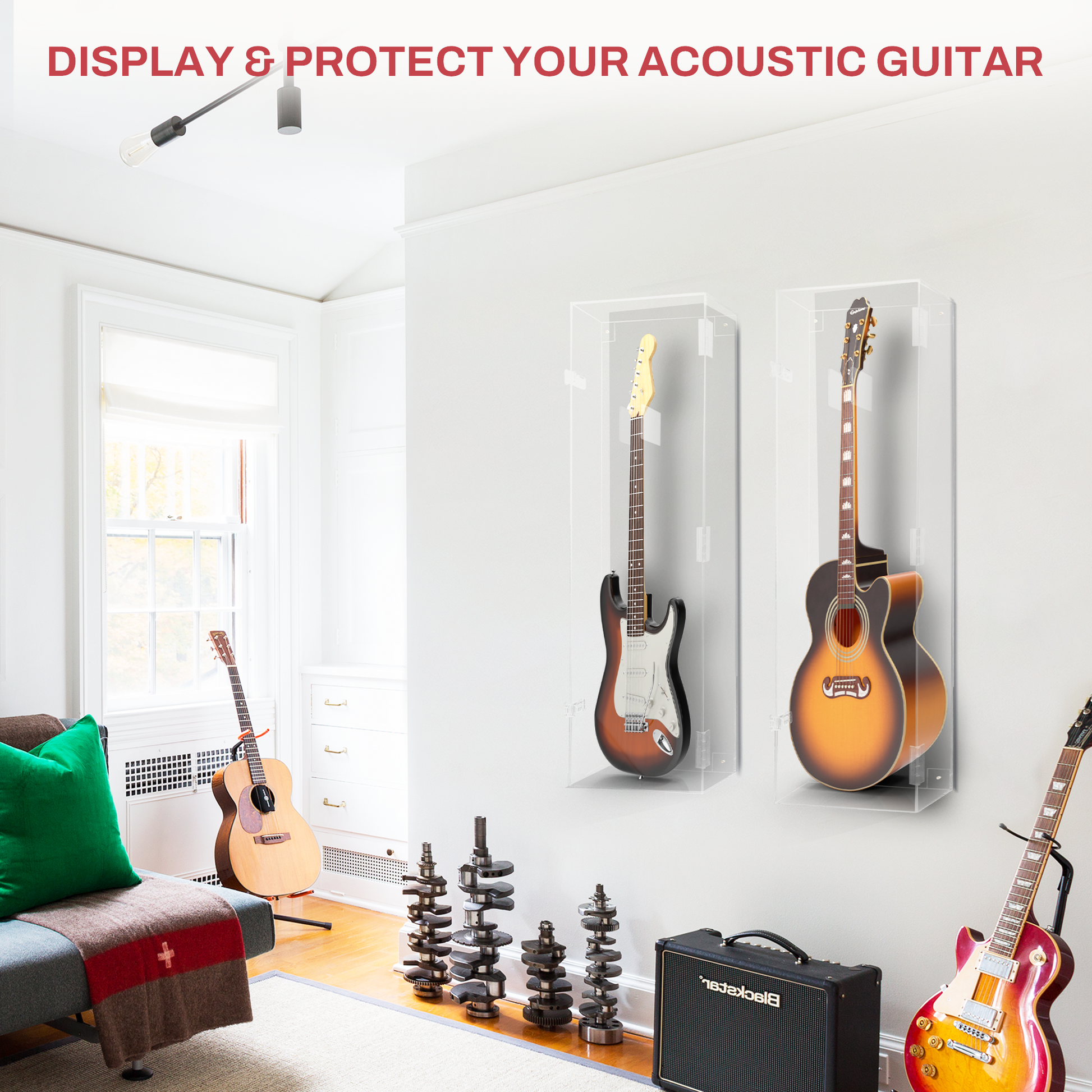 - 【Easy Display Method】- Give your home a chic, elegant, modern design with our acrylic guitar cases. Depending on your desired setup, you can mount it on your wall horizontally or vertically. You can also set it on a shelf and give your acoustic guitars and electric guitars another display perspective.