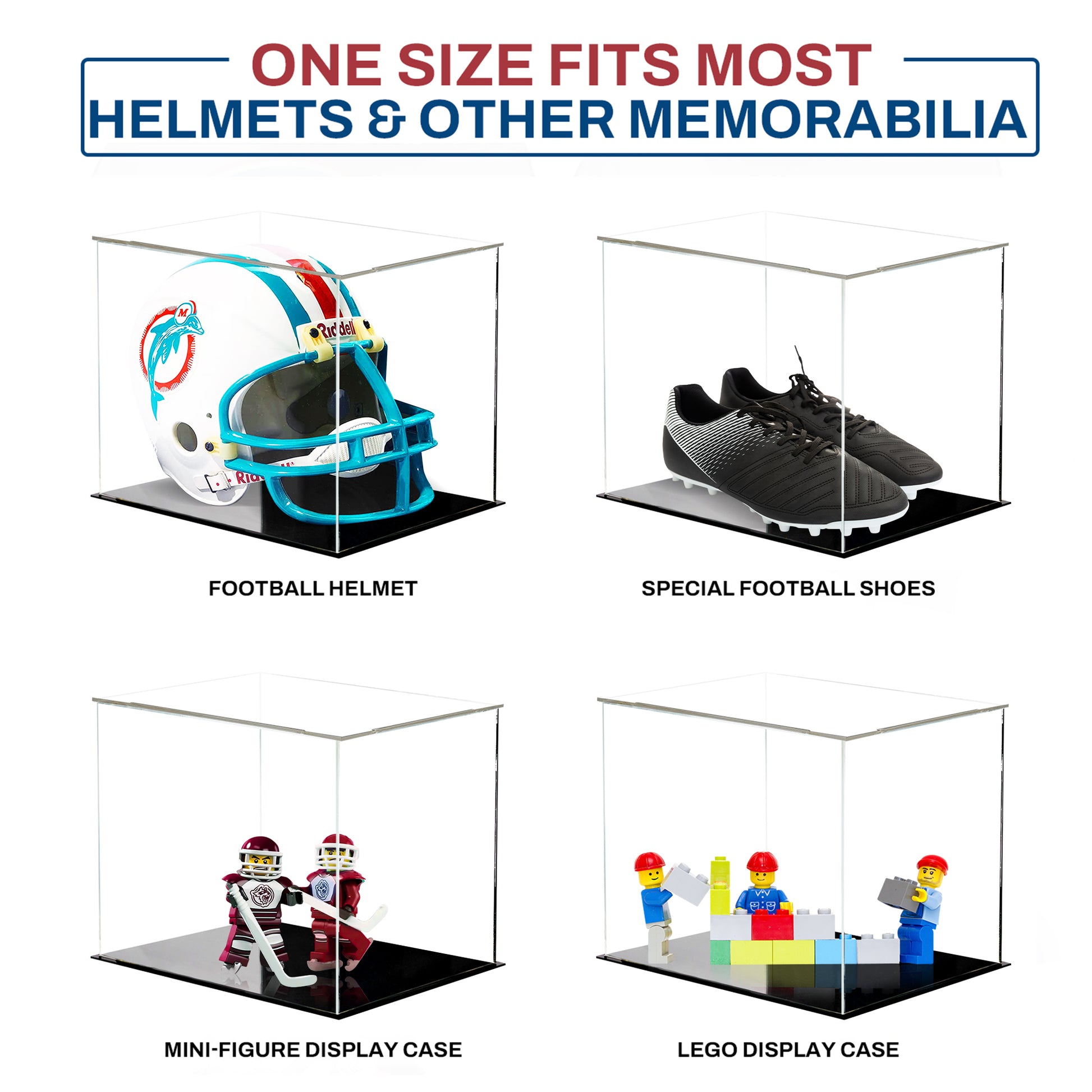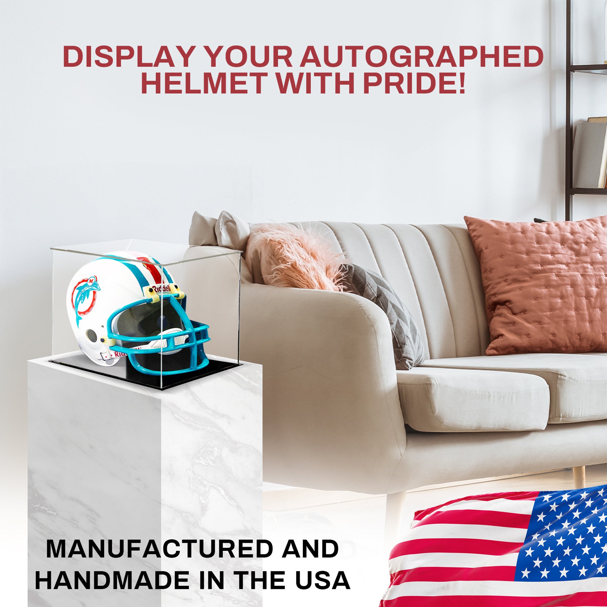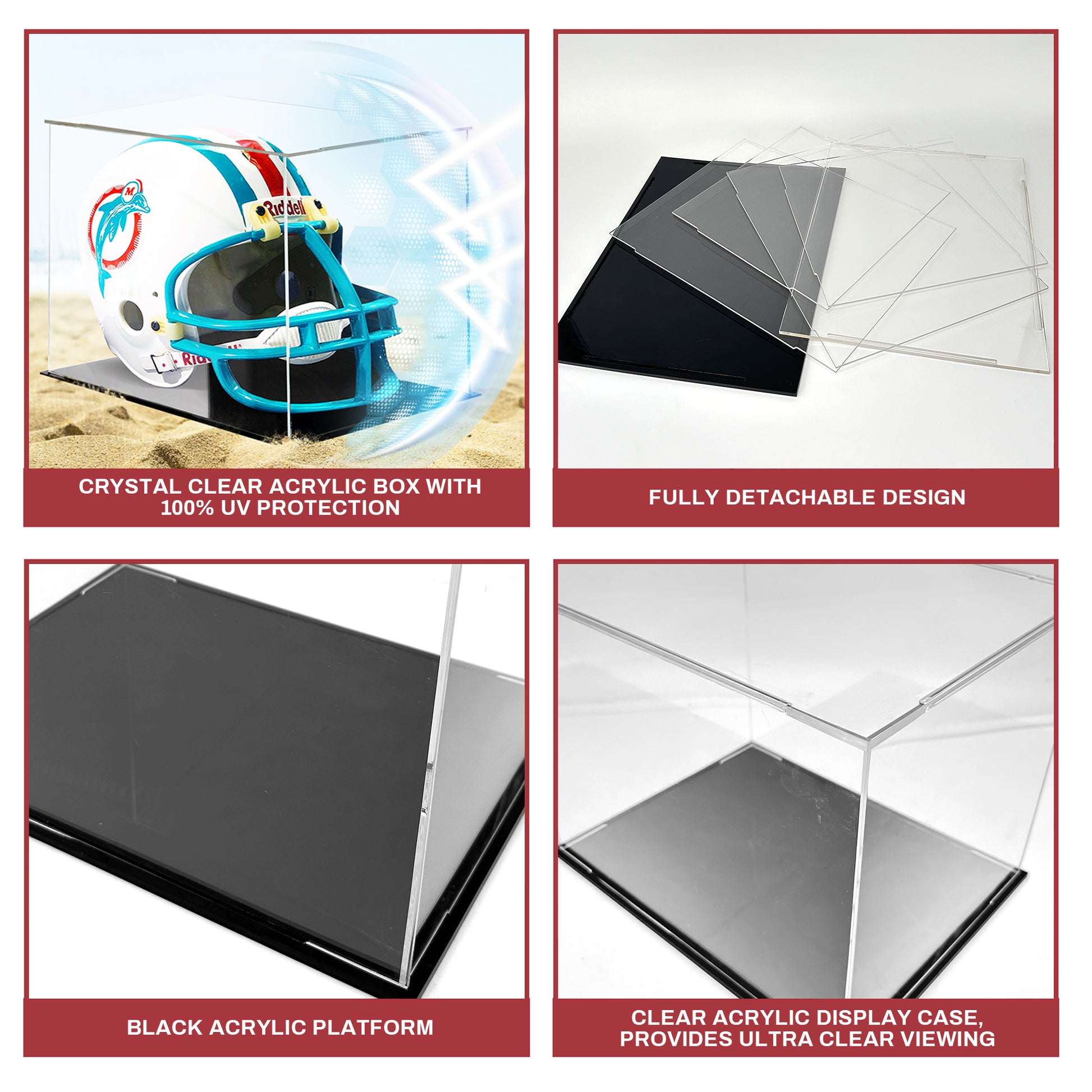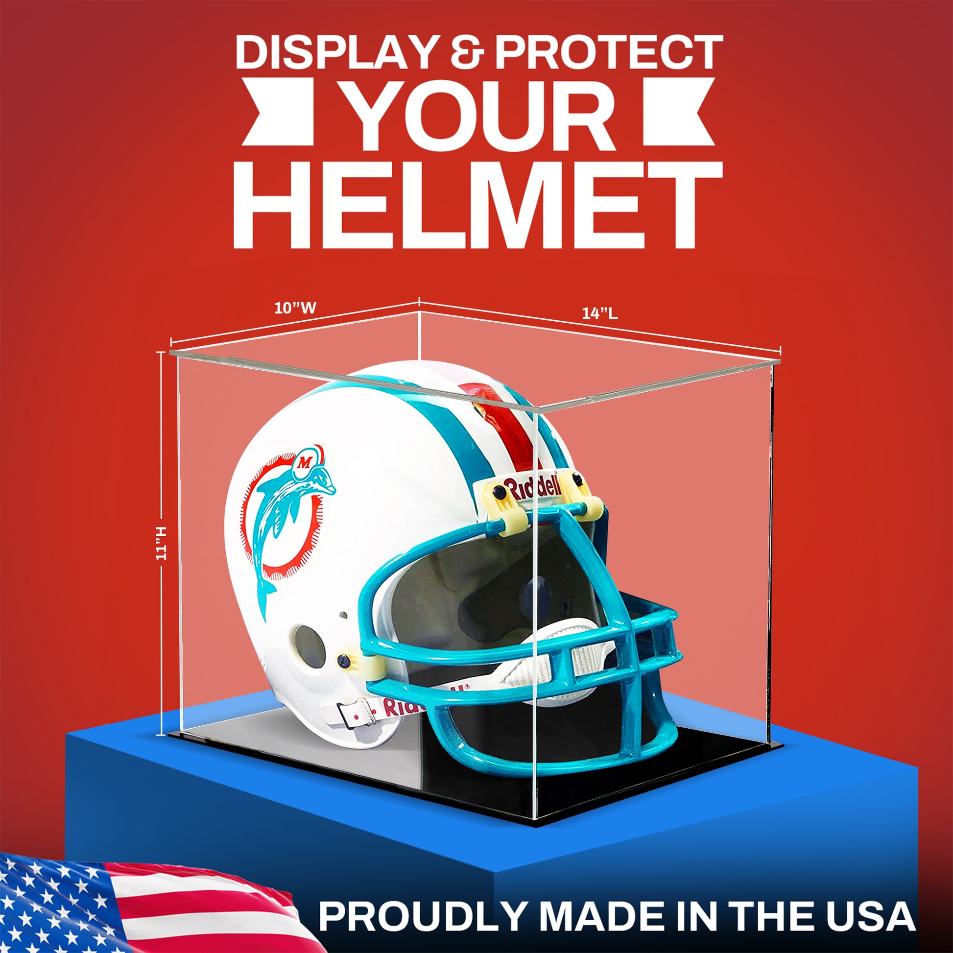 High-Quality Acrylic Material: Our proudly USA made glass display case is constructed from crystal-clear, durable acrylic. It provides an unobstructed view of your collectible helmet while ensuring long-lasting protection with quick and simple setup.