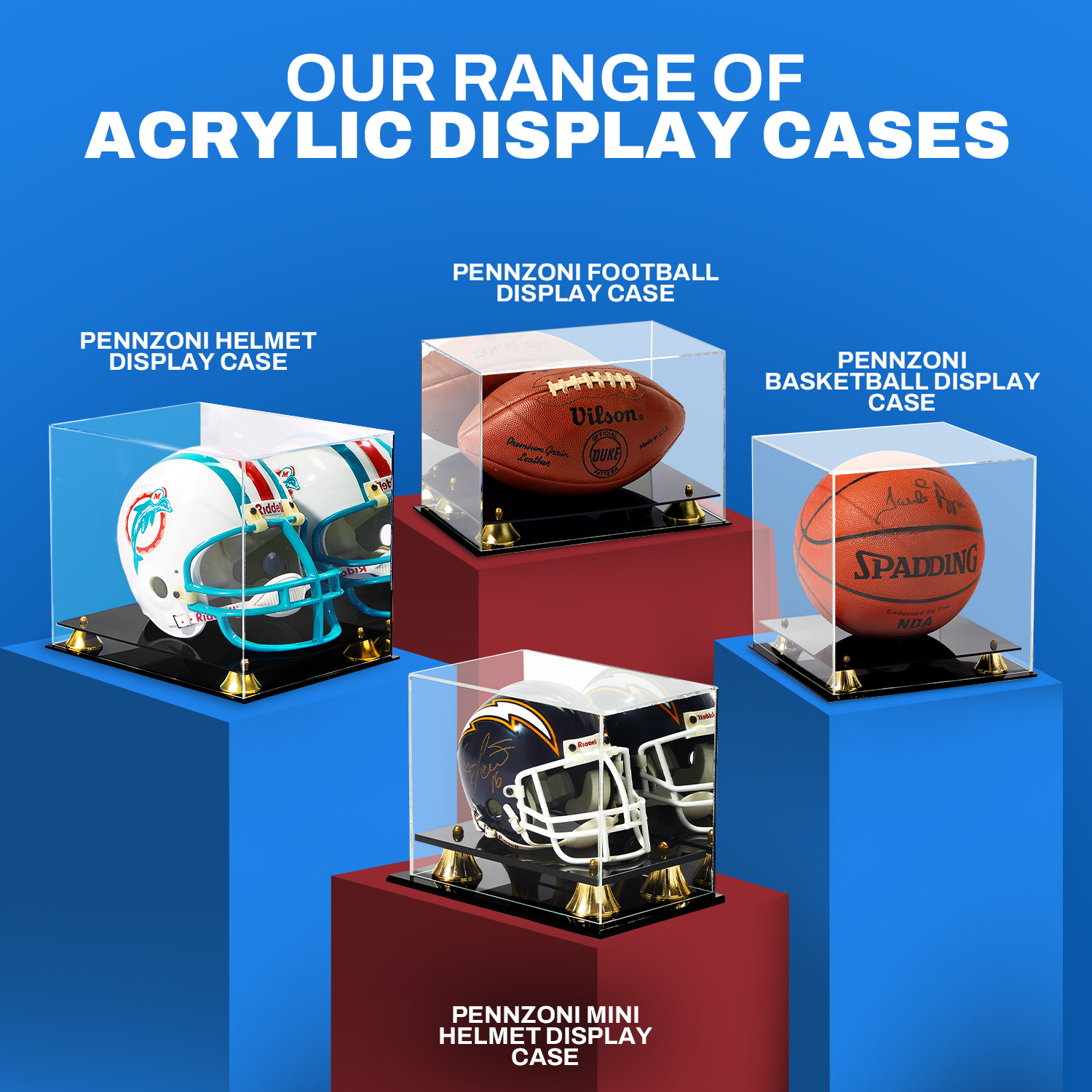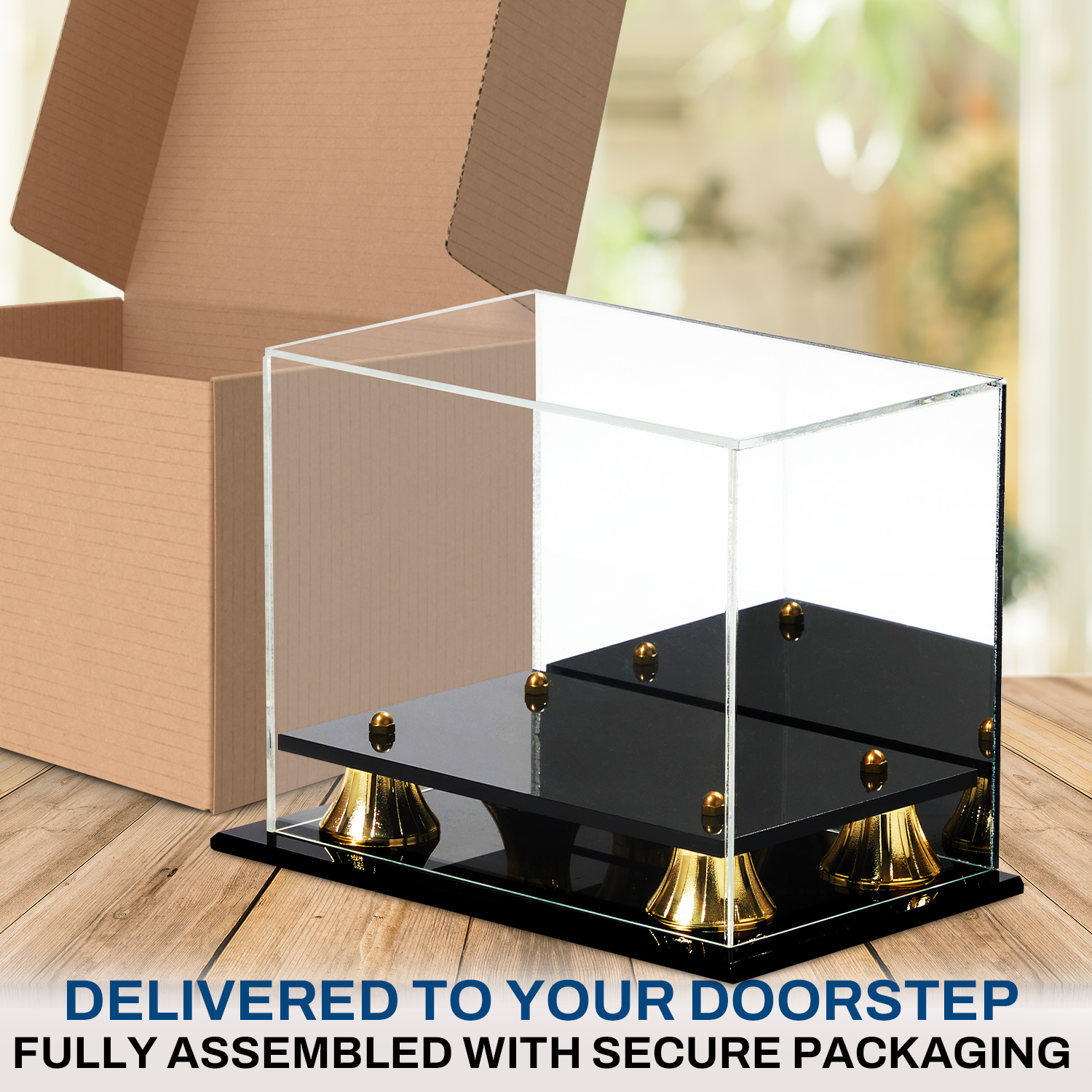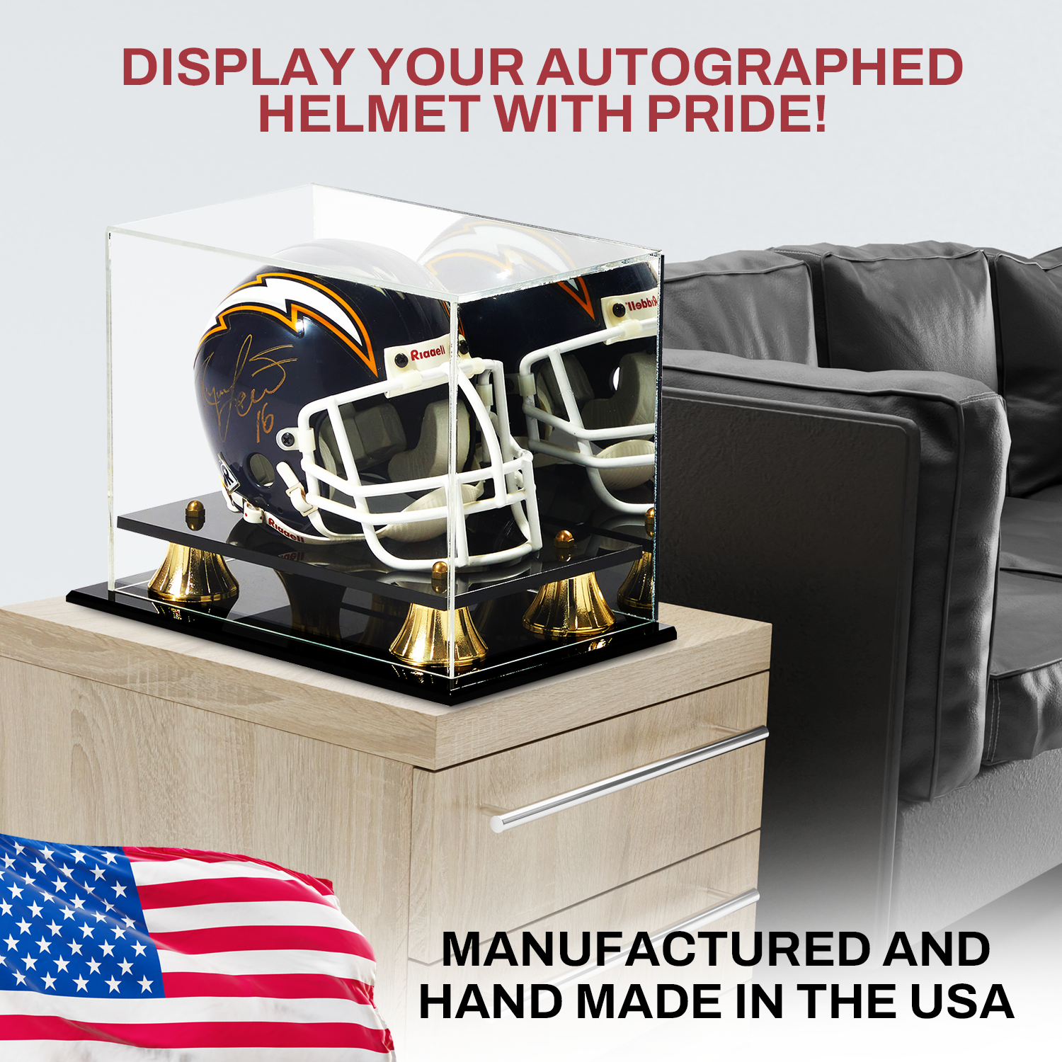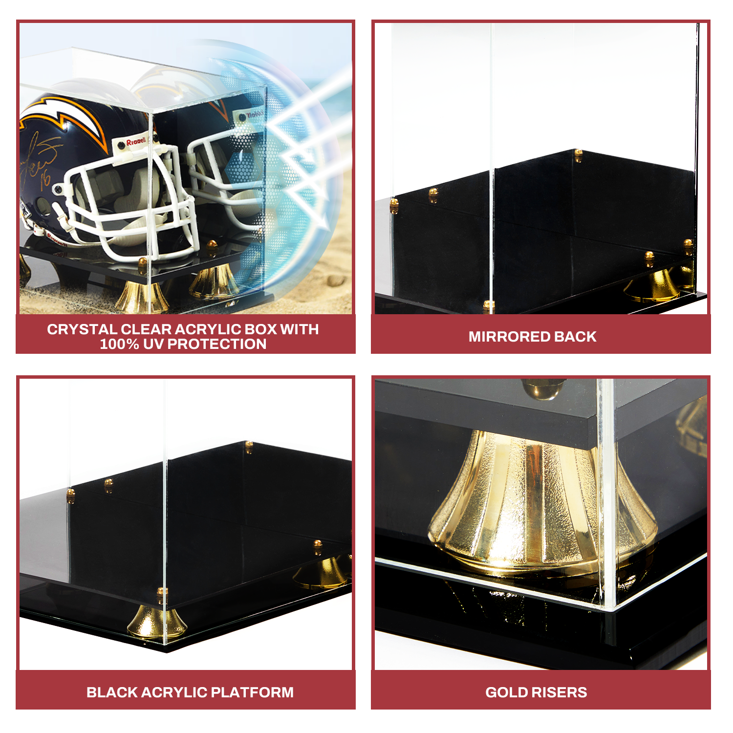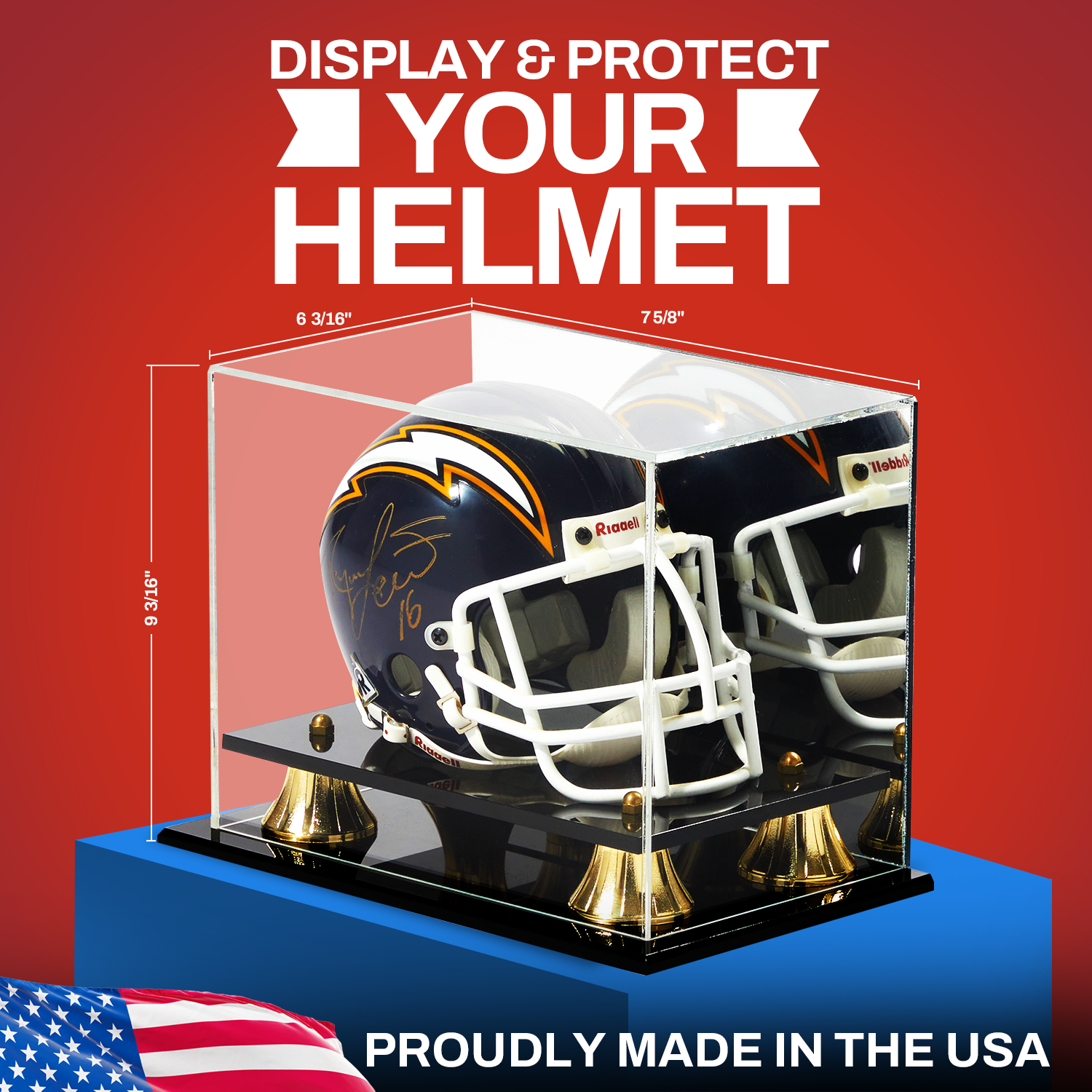 - 【Display Your Autographed Mini Helmet with Pride】- Our acrylic display case provides ultra-clear viewing that offers easy access to your collectibles & 100% UV protection that guarantees to ward off harmful sun damage to avoid fading and protects your collectibles from dust, scratches, fingerprints & other damaging elements. It has a black acrylic base and gold risers to highlight your display.