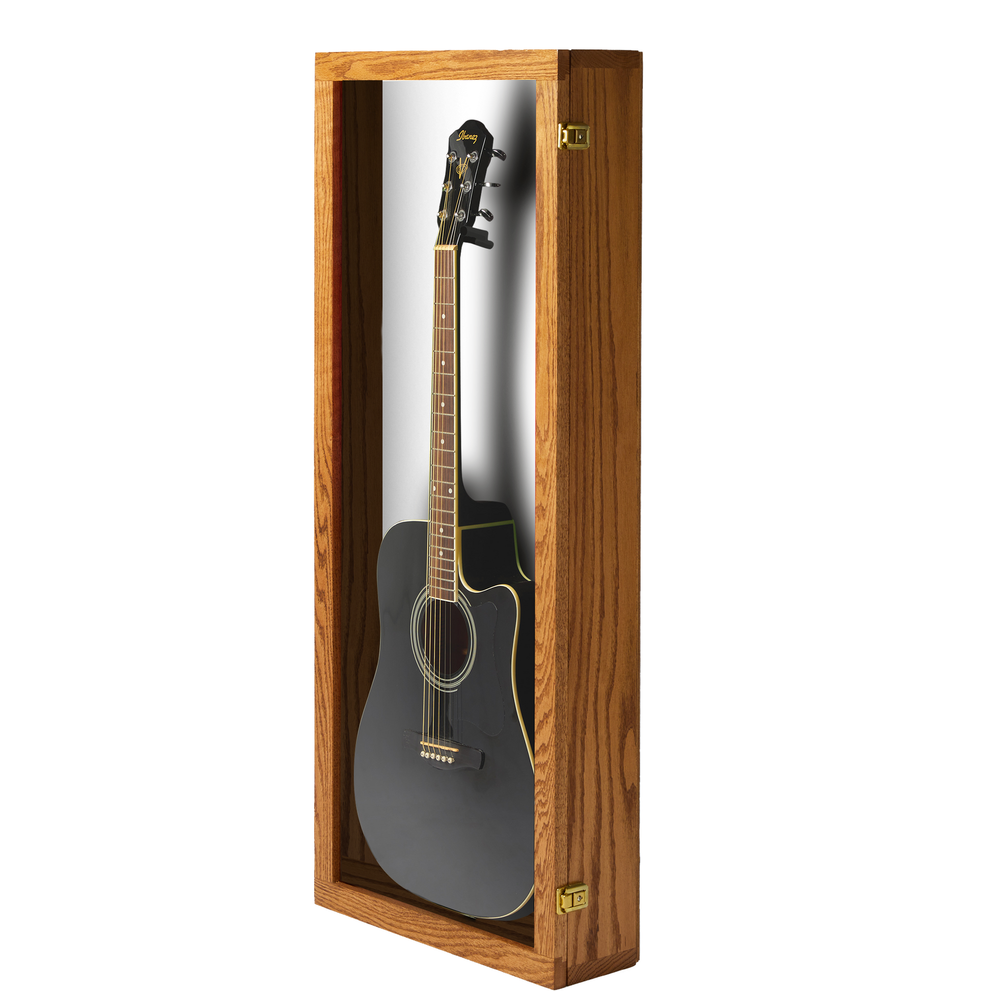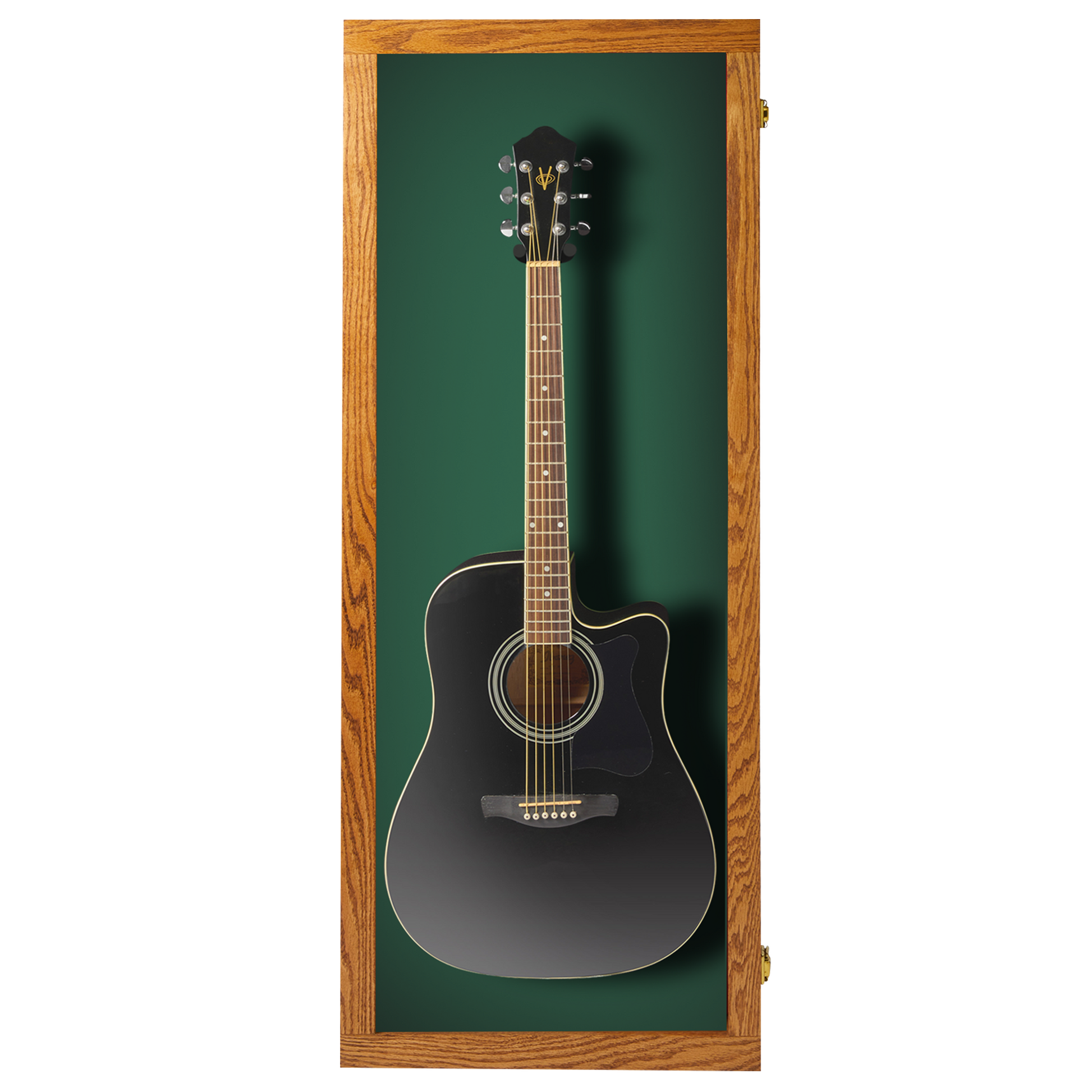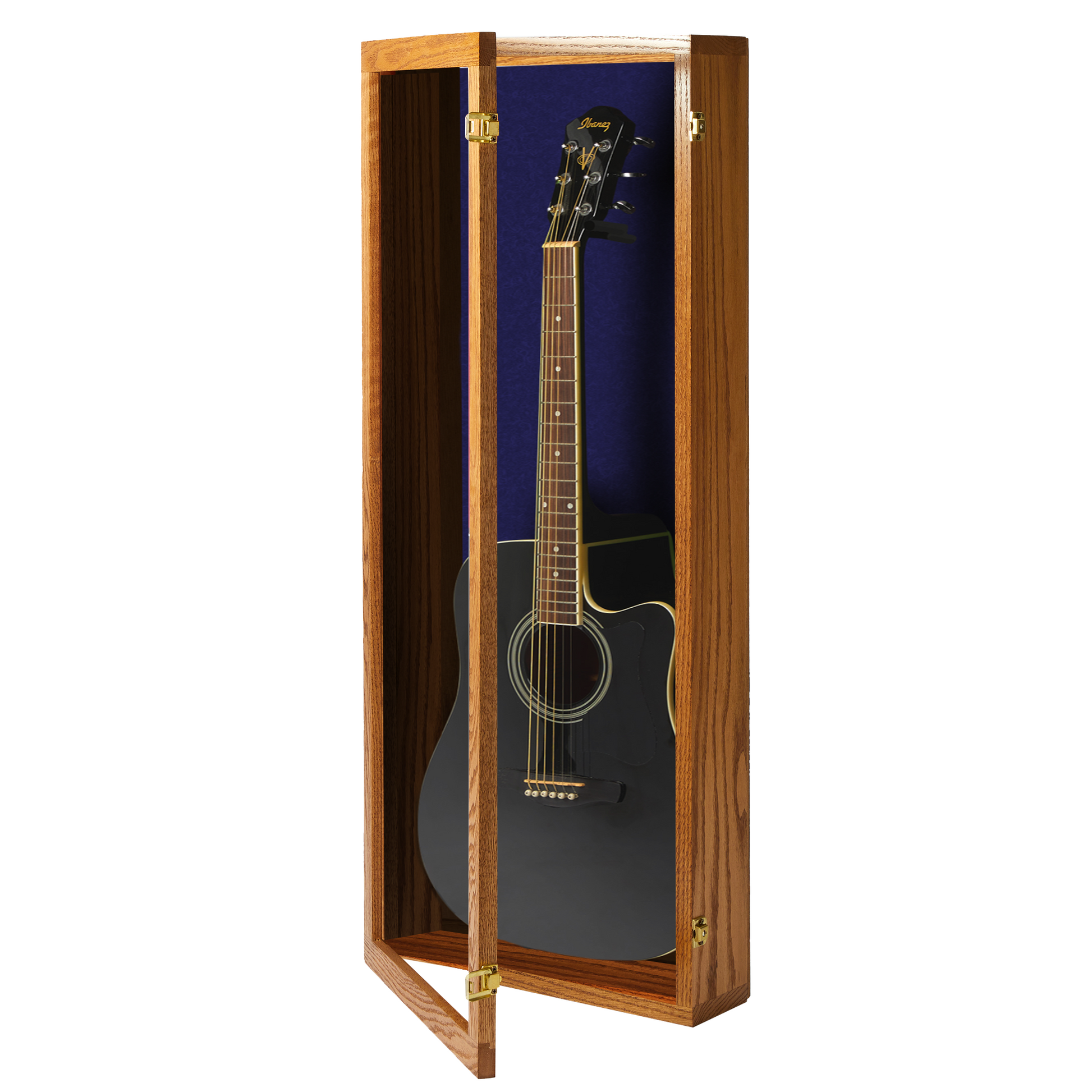 - 【Guaranteed to Withstand Deterioration】- Our guitar display cases can be both an electric guitar case or acoustic guitar case depending on the size of your guitar. This guitar display mount is built to last. On top of its hardwood glossy natural oak finish frame, our guitar wall case comes with a heavy-duty crystal clear acrylic door that provides ultra-clear viewing with 100% UV protection.
