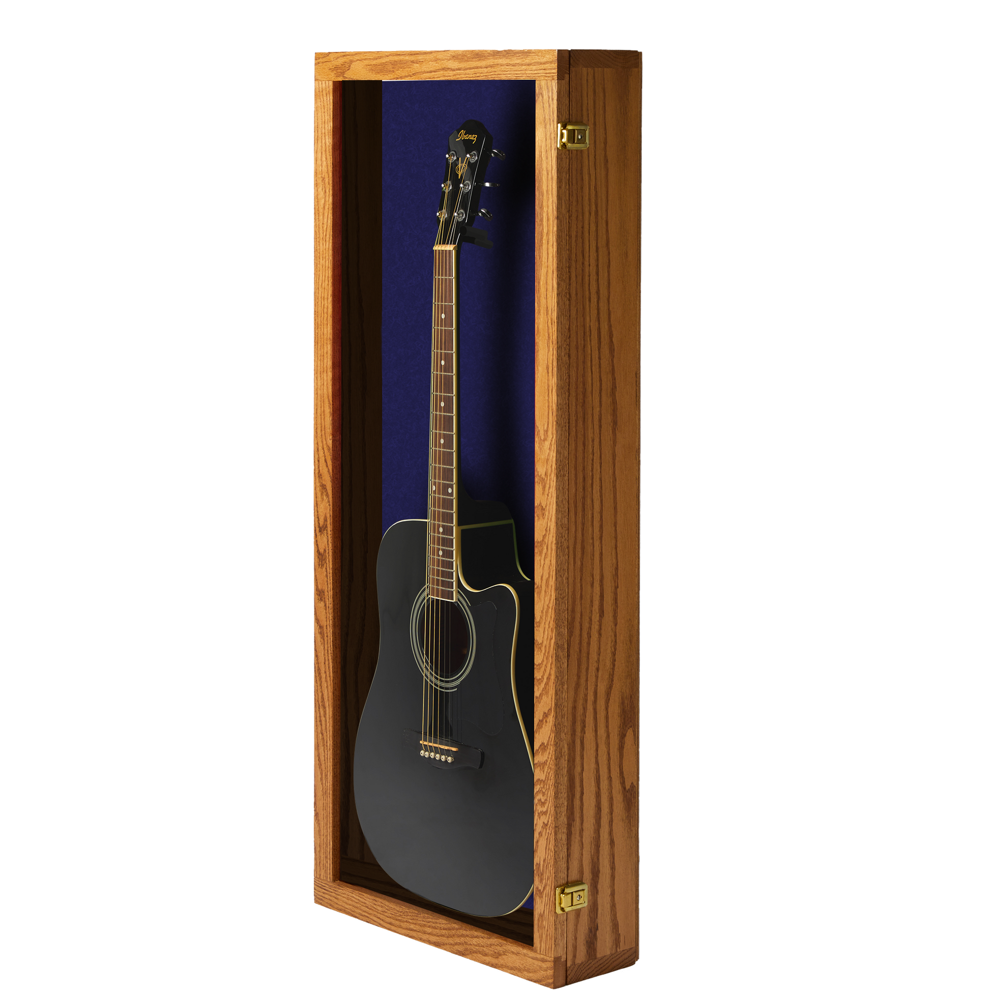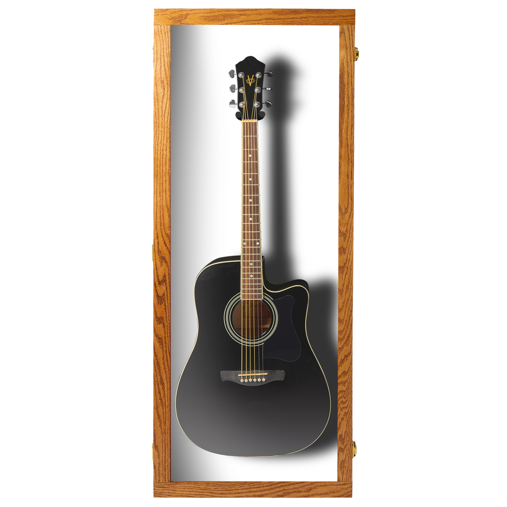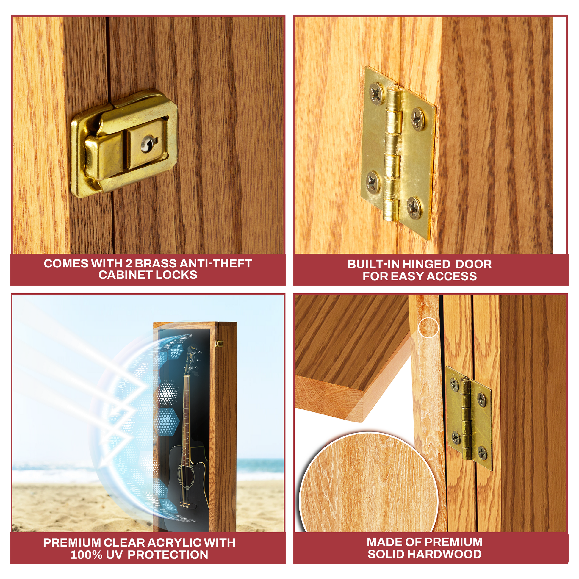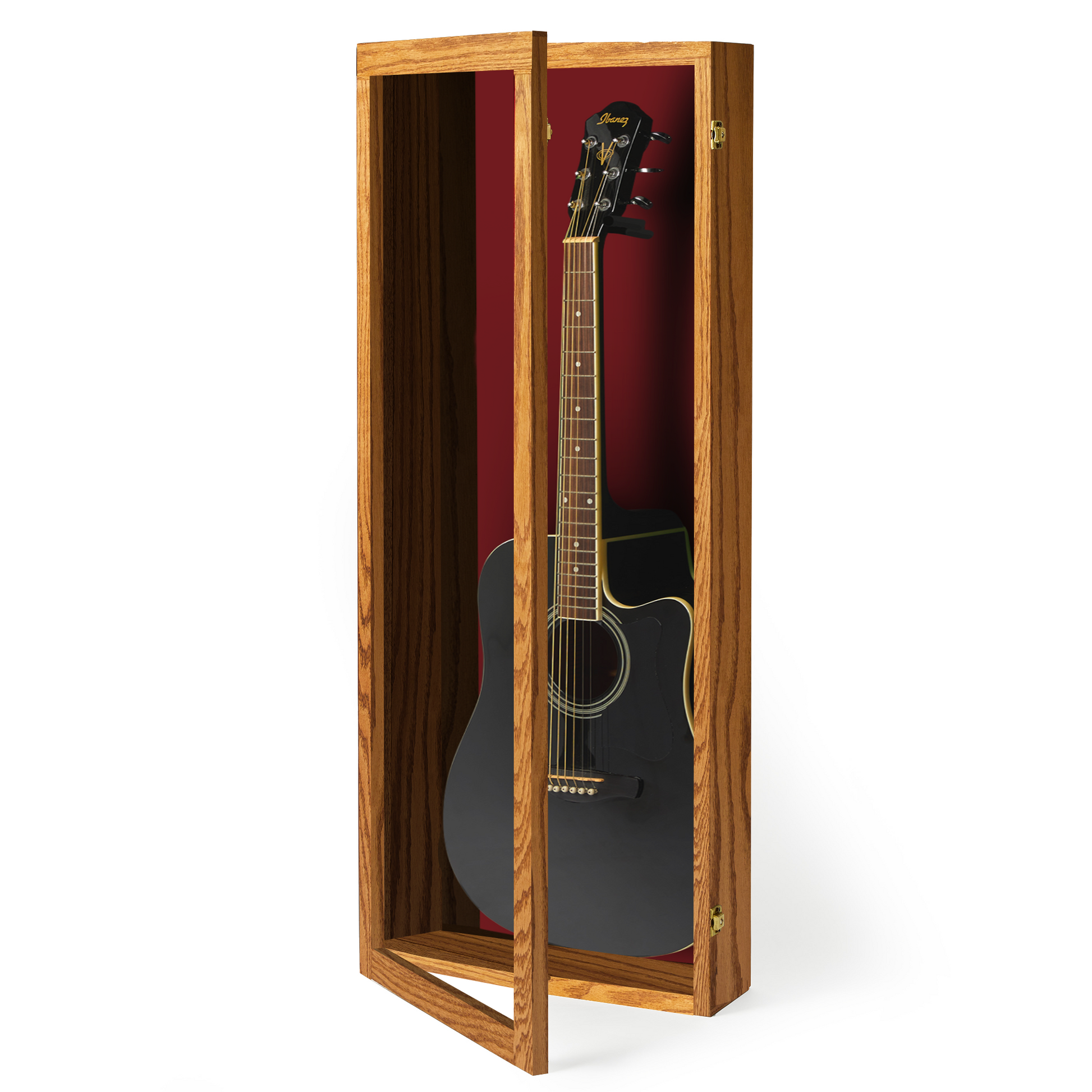 - 【Guaranteed to Withstand Deterioration】- Our guitar display cases can be both an electric guitar case or acoustic guitar case depending on the size of your guitar. This guitar display mount is built to last. On top of its hardwood glossy natural oak finish frame, our guitar wall case comes with a heavy-duty crystal clear acrylic door that provides ultra-clear viewing with 100% UV protection.