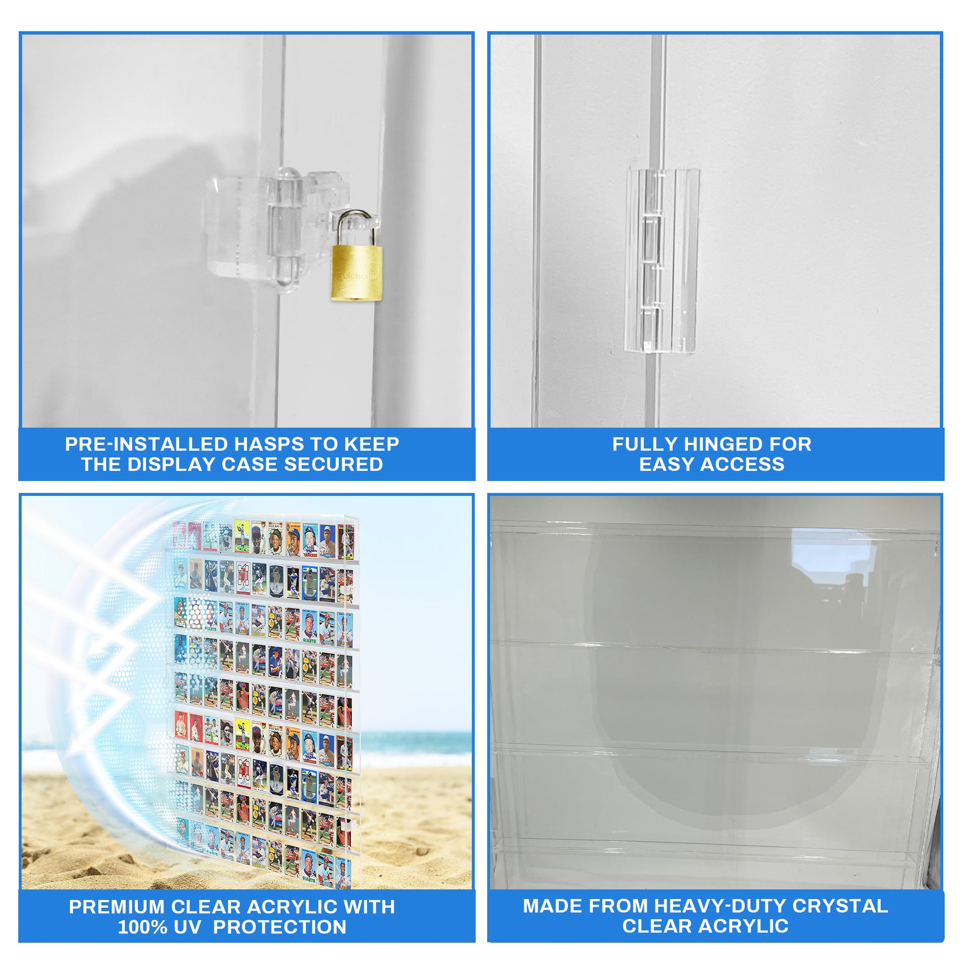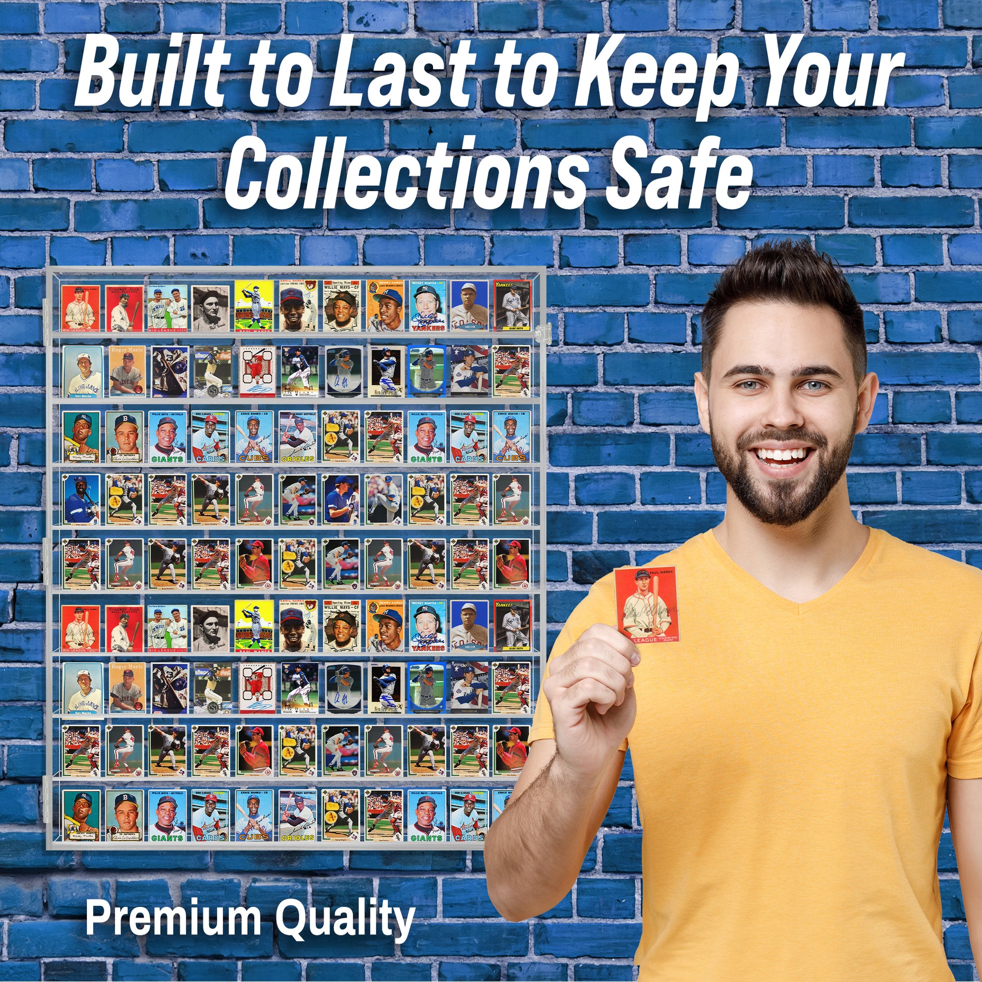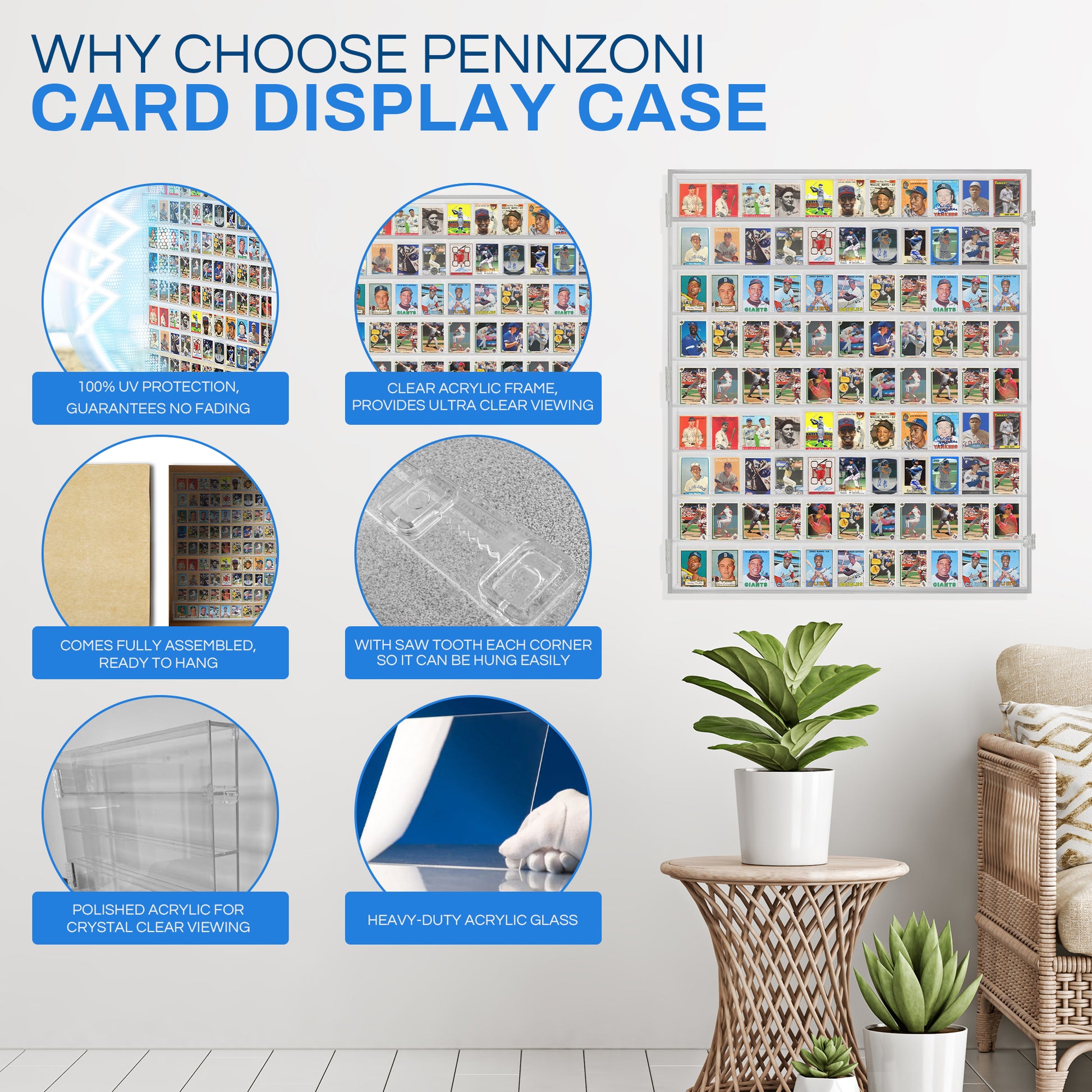 Sturdy Storage Design: Pennzoni's baseball card showcase comes pre-assembled with a crystal-clear acrylic frame that provides ultra-clear viewing, Full UV protection, and dust prevention. It also comes with acrylic hinges and ready-to-hang hooks.