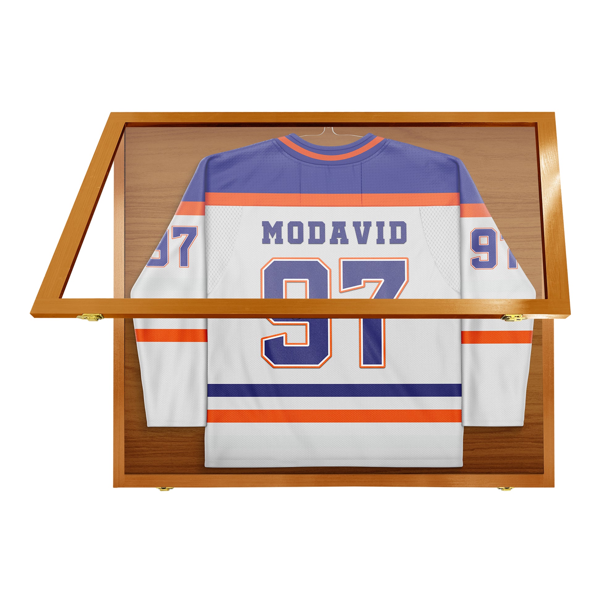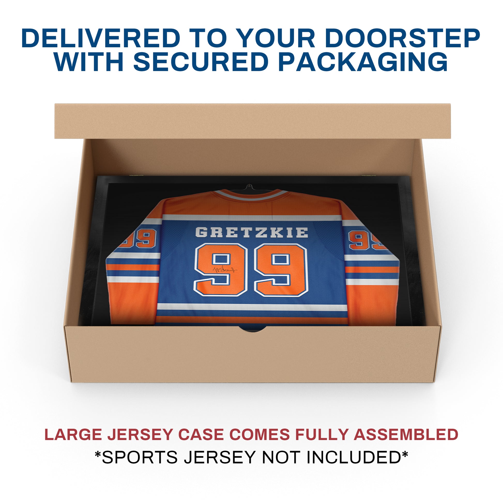 - 【Easy Display Method, Fits All Sizes】- Our jersey display case comes assembled for easy set-up in minutes. If you prefer your jerseys to be hung, gator tooth hooks are already installed, and ready for wall mounting, or you can pin your jersey in! This shadow box for jersey display fits all sizes of jerseys including XL, XXL, and XXXL jerseys for basketball, football, hockey, baseball, & soccer jersey.