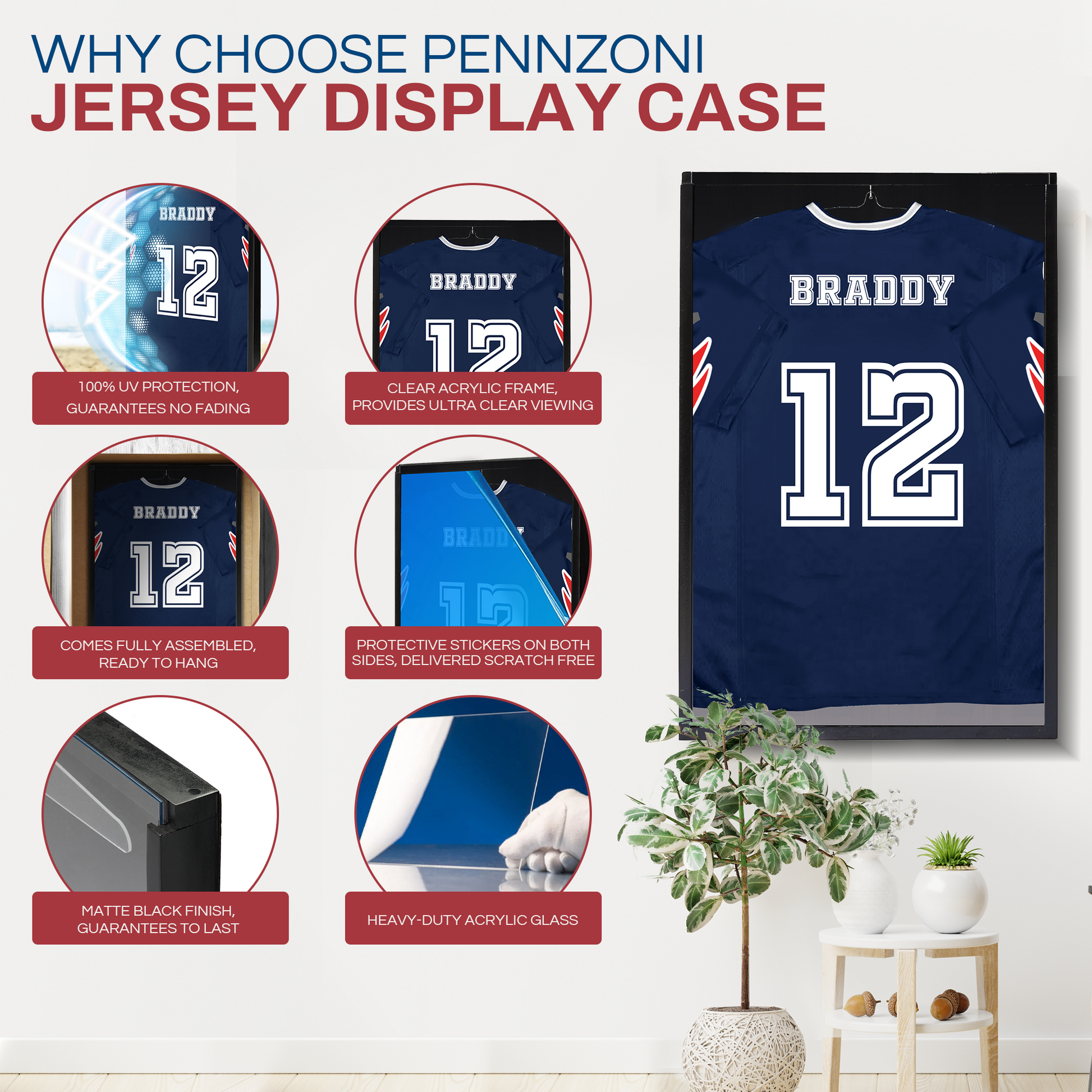 - 【Packaging, Inclusions, & Warranty】- At Pennzoni Display Co, we always consider the fragility of our products. We provide strong and safe packaging to your acrylic display frame case to ensure items are fully protected! Inclusions are 1 clear shadow box jersey hanger and a set of wall mounting screws. Your satisfaction is our top priority! Contact us and we will always provide a solution to your shadow box display cases.