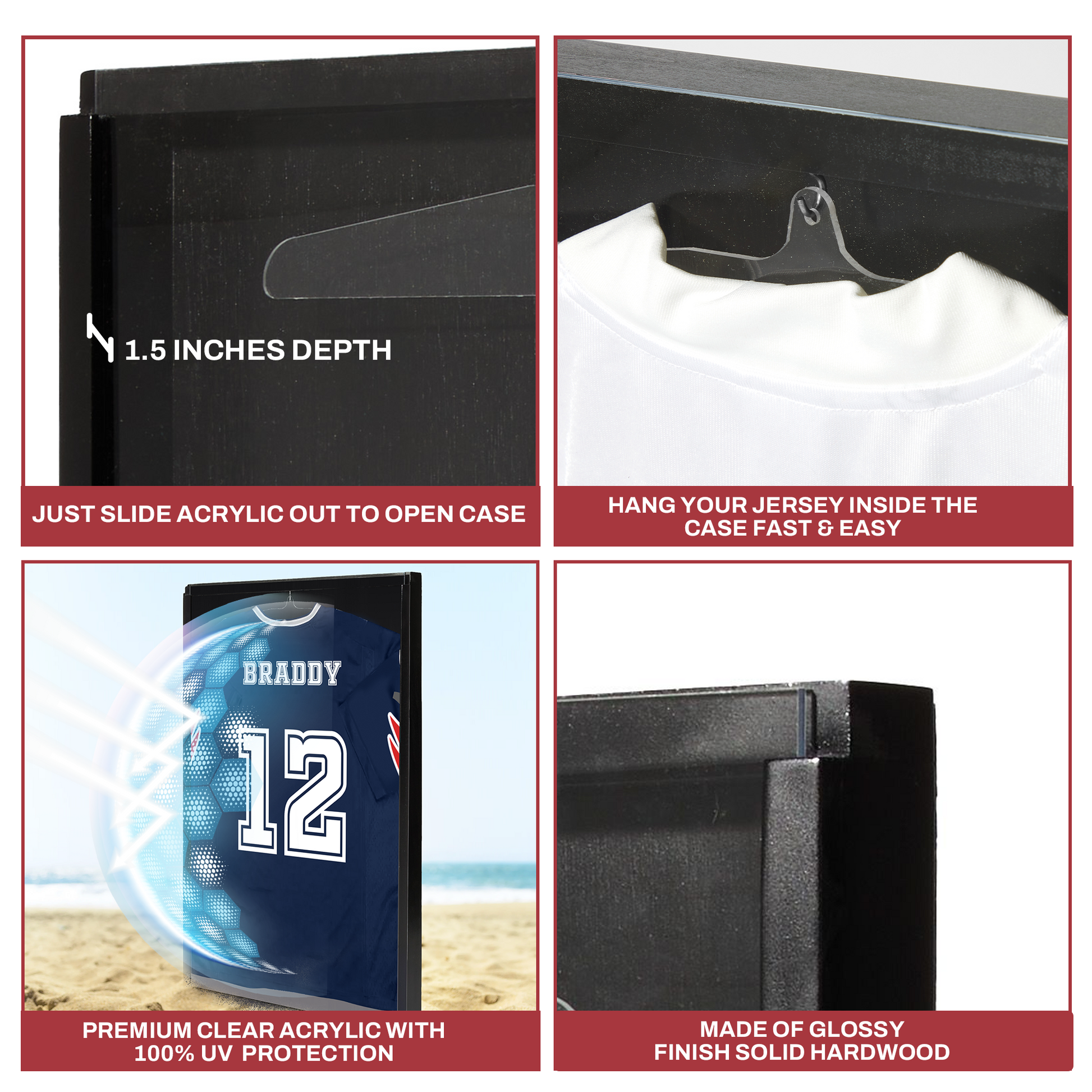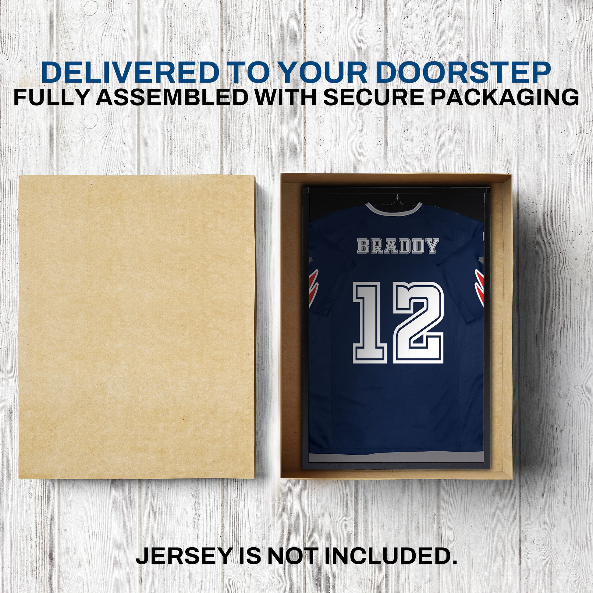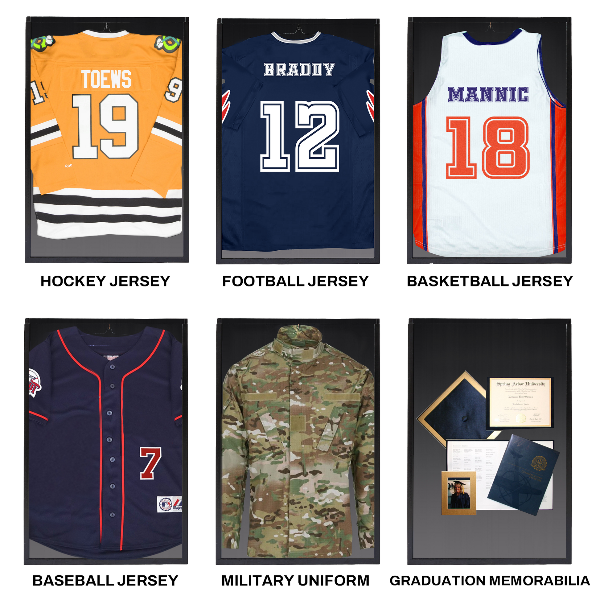 - 【Display & Protect Your Collectibles】 - Unlike other shadow box display cases, our product has 100% UV Protection that guarantees no fading on your jersey, won't turn yellow over time, and keeps dust away. Our Jersey shadow box frame offers an ultra-clear viewing of your basketball, football, soccer, baseball, softball, hockey, & other sports souvenirs. With our premium quality shadow box acrylic display case, your valued collectibles are safe, protected, and can withstand the test of time.